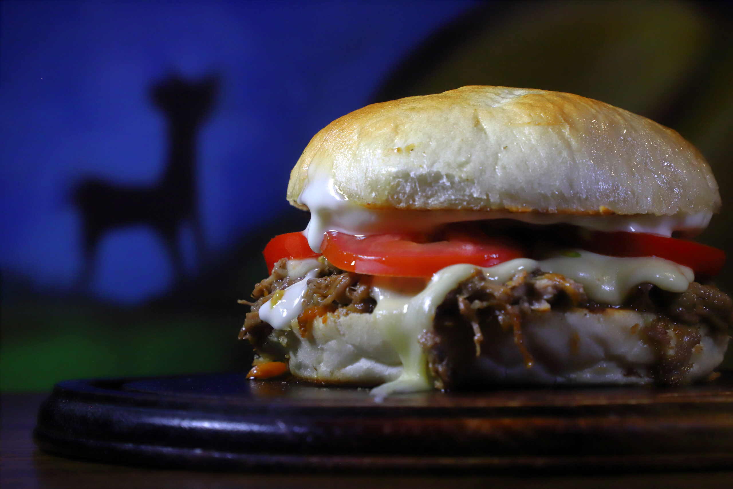 Pan amasado, queso, tomate, mayo de la casa.
